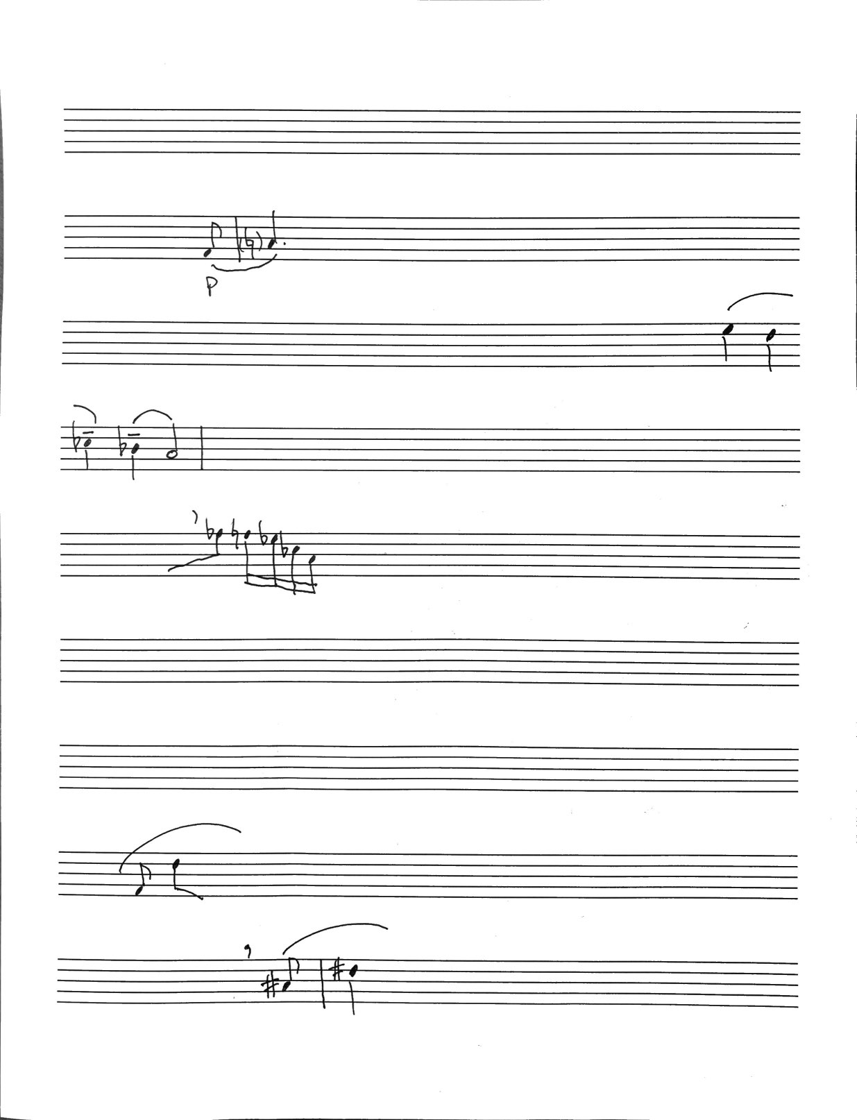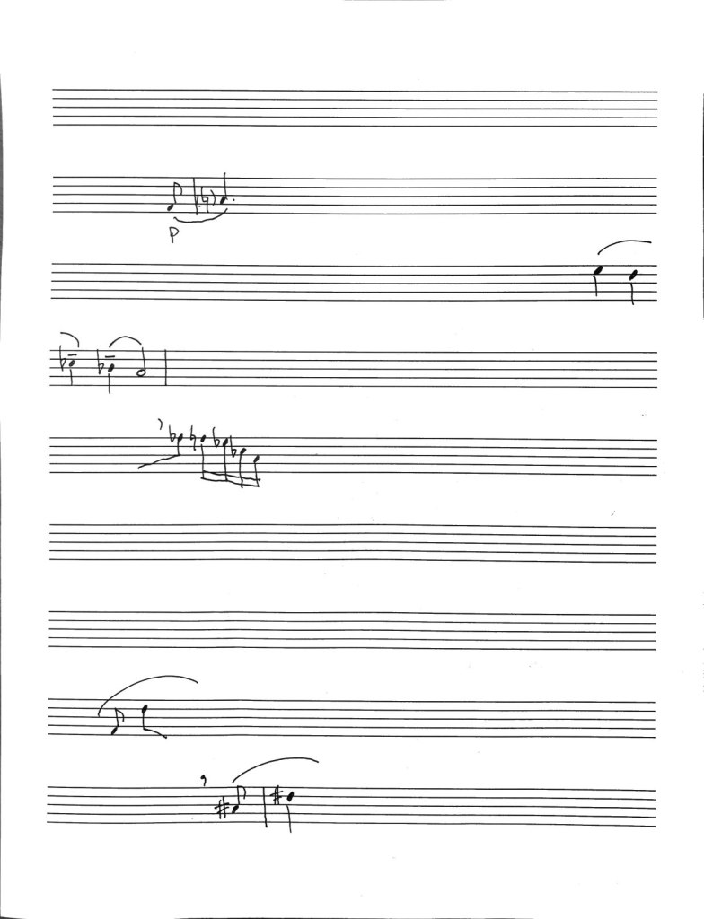 To create your cue sheet, you will need another blank sheet of manuscript paper. As you listen back to your memorized performance, write in the music for the spots where you slipped up. Write the cues in the exact spot where they appear in the original (that’s visual memory again!). Here is an example of what such a cue sheet might look like.